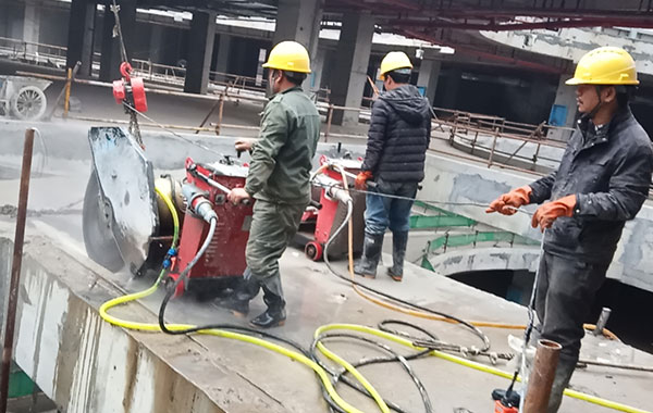 對原鋼筋混凝土結構,采用金剛石碟式鋸片切割,將原混凝土全部拆除,采用分段分塊作業,切除時控制切割的深度,不切入原結構。對原復雜混凝土結構,采用金剛石繩鋸切割和金剛石筒鋸鉆孔機排孔鉆切組合作業。