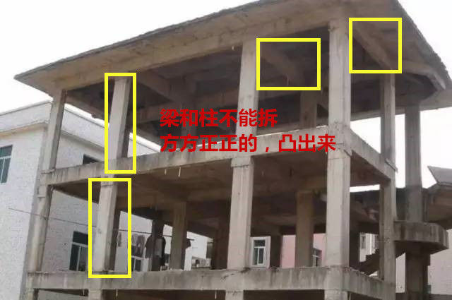 2、承重梁跟柱不能拆