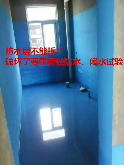 防水這個大家還是懂的,不想樓下跑來要咱們索賠,不能破壞喲,破壞了也要重新做防水,記得做閉水試驗喲,夏天24小時,冬天48小時,樓下屋頂不滲水就ok。