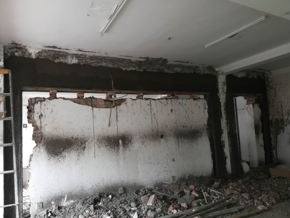 5、在工程施工過程中,專業人員應在被拆除的墻壁上灑水和除塵,以保護周圍環境。