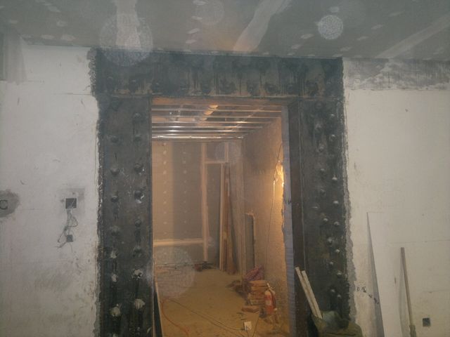 但是剪力墻開孔需要加固,需要在經(jīng)有關(guān)部門事先審批手續(xù),方可進行門洞加固施工。