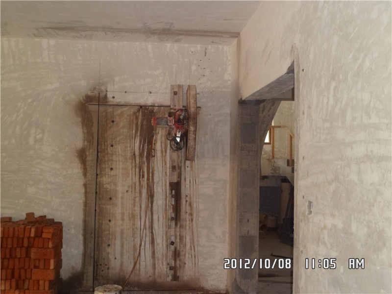 (1)、墻鋸切開門、窗和開孔。包括:樓板洞口、墻洞口、承重墻洞口和剪力墻洞口等。 水鉆排孔、水鉆門窗洞口。包括:地板水鉆門洞、墻壁水鉆門洞、承重墻水鉆門洞、剪力墻水鉆門洞等。 施工要求: 使用前檢查并確認電機和電纜正常,保護接地好,防護裝置安全有效,鉆頭選用符合要求,安裝正確。