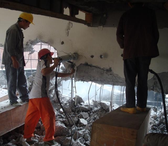 破壞性拆除:用空氣鎬錘,將混凝土一塊一塊地打碎,將其拆除。或者,在混凝土上鉆孔并用炸藥炸開它們。