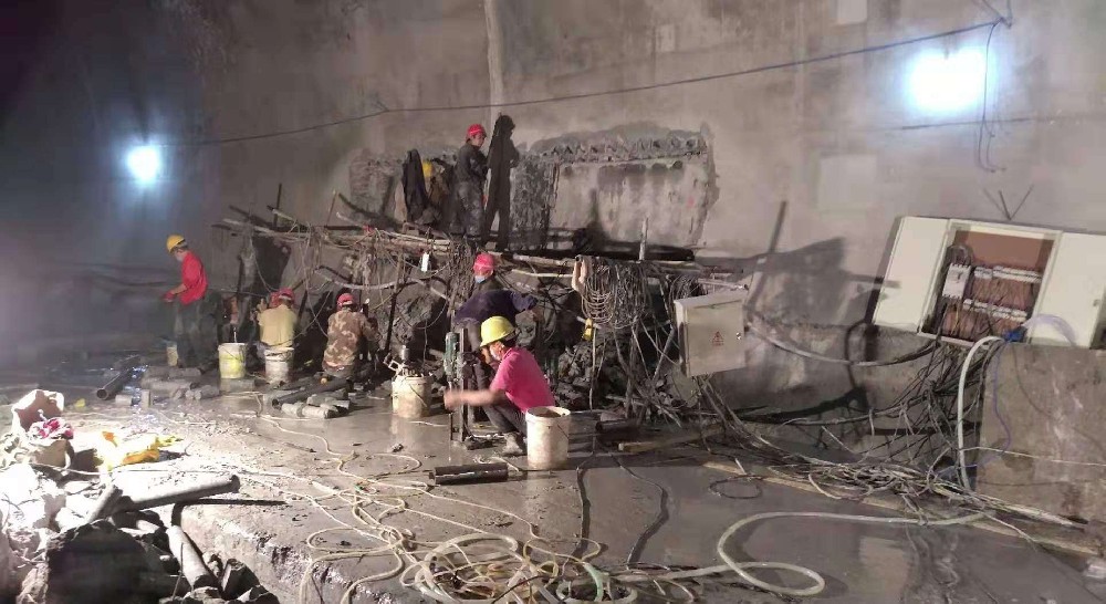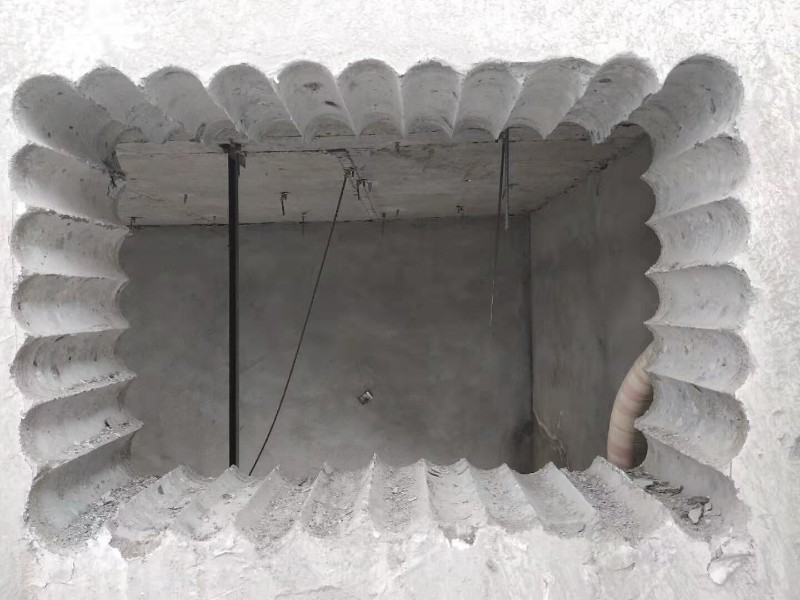 如果沒有爆破條件,可以用斷跟后整體拉下來的方法。也就是說,在混凝土墻底部兩側的根部拔出一個凹槽,露出鋼筋后,切斷鋼筋。然后用大錘將鑿子放入凹槽中,將混凝土墻頂部斷裂。然后把繩子掛在墻的頂部,然后把它拉下來。這比人工硬鑿要快得多。