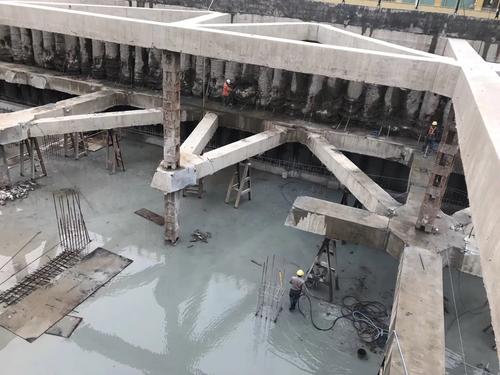 基坑深度深,需要鑿除五道內的支撐。在基坑支撐拆除過程中,整個基坑的應力平衡通過三種支撐結構支撐到地塊結構上。拆除支撐順序選擇、渣土運輸及成品保護。施工過程安全管理。