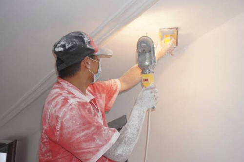 抹灰層應(yīng)先干燥牢固,空鼓部分已修補(bǔ)。抹灰層上殘留的灰塵、污垢、飛濺的泡沫、砂漿流痕等雜物應(yīng)清除干凈。