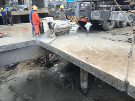 5、在混凝土切割施工的過程中,可以在混凝土的表面澆水,這樣水分子就會(huì)滲入到混凝土的表層,可以將混凝土有效分解,表面的溫度就會(huì)隨之降低,然后會(huì)出現(xiàn)裂縫,這樣更有利于橋梁的切割工作。