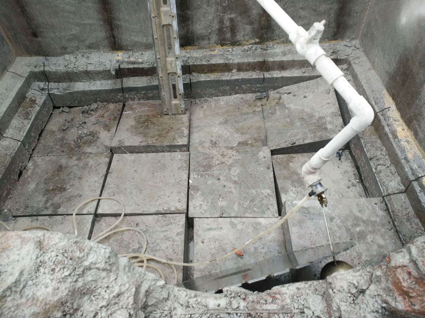 (2)、清理切割區(qū)域場(chǎng)地,主要包括地面建筑及裝飾垃圾的清理,影響切割的各種管線(風(fēng)管、電線管、雨水管等)。